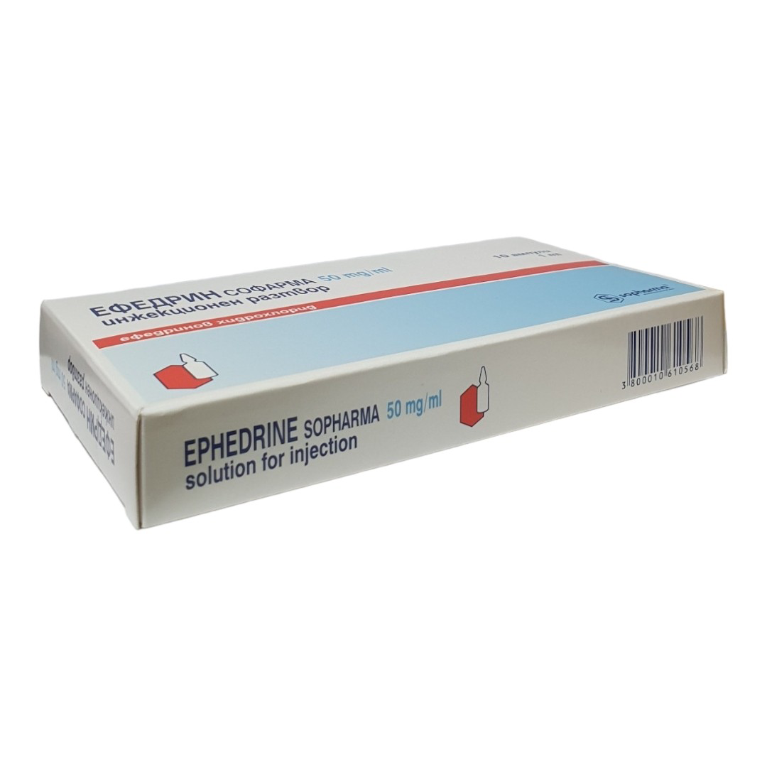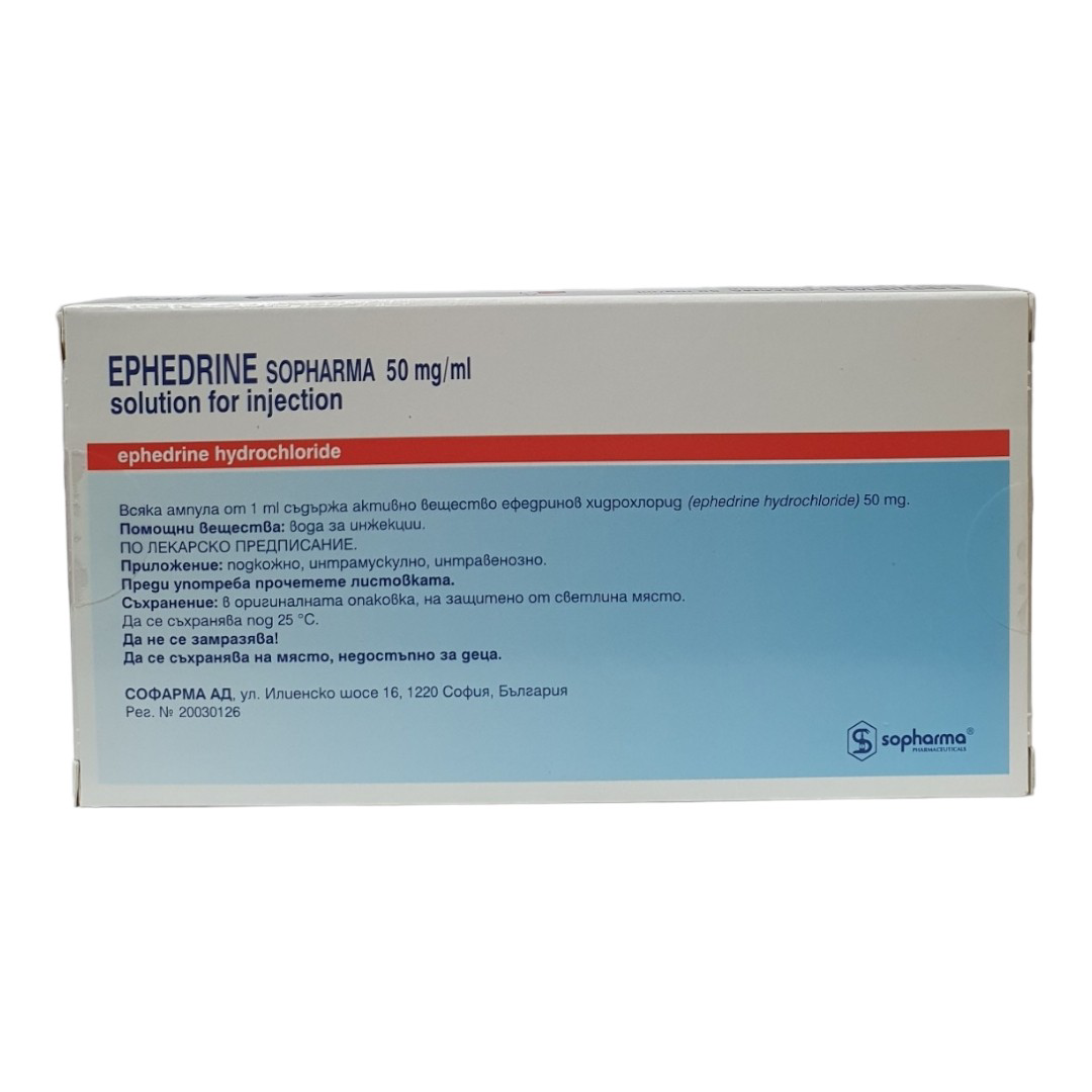Ephedrine Sopharma 1 ml contains Ephedrine Hydrochloride and is supplied in the form of ampoules for injectable use.